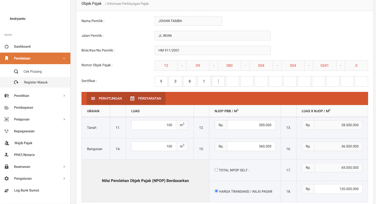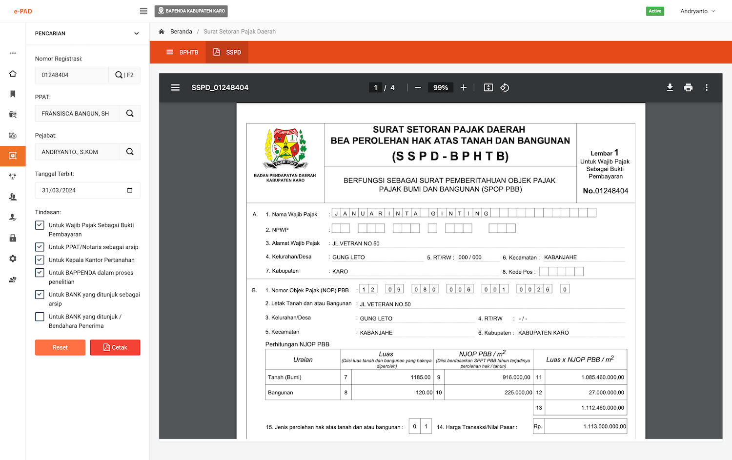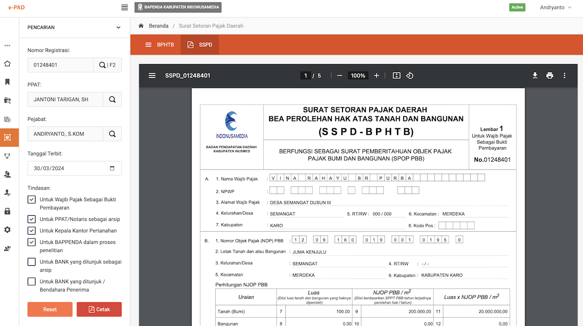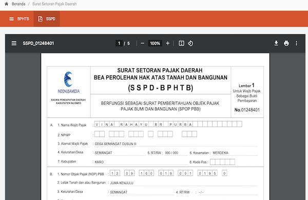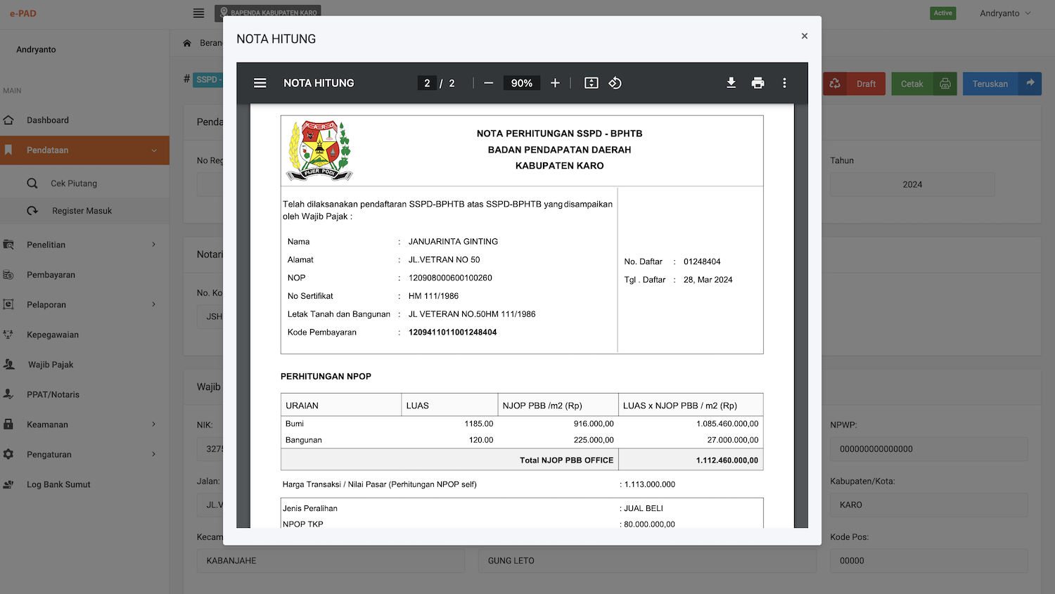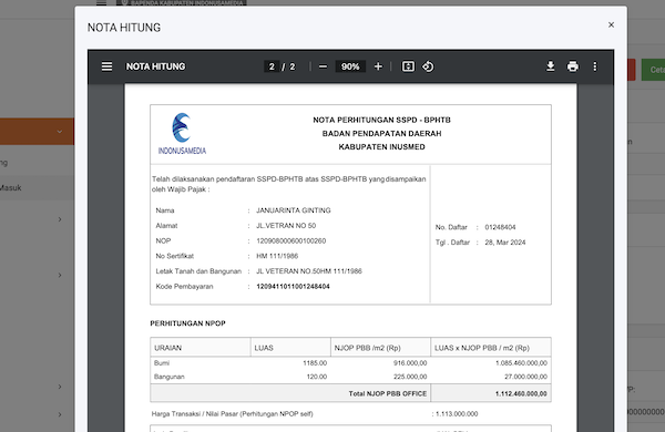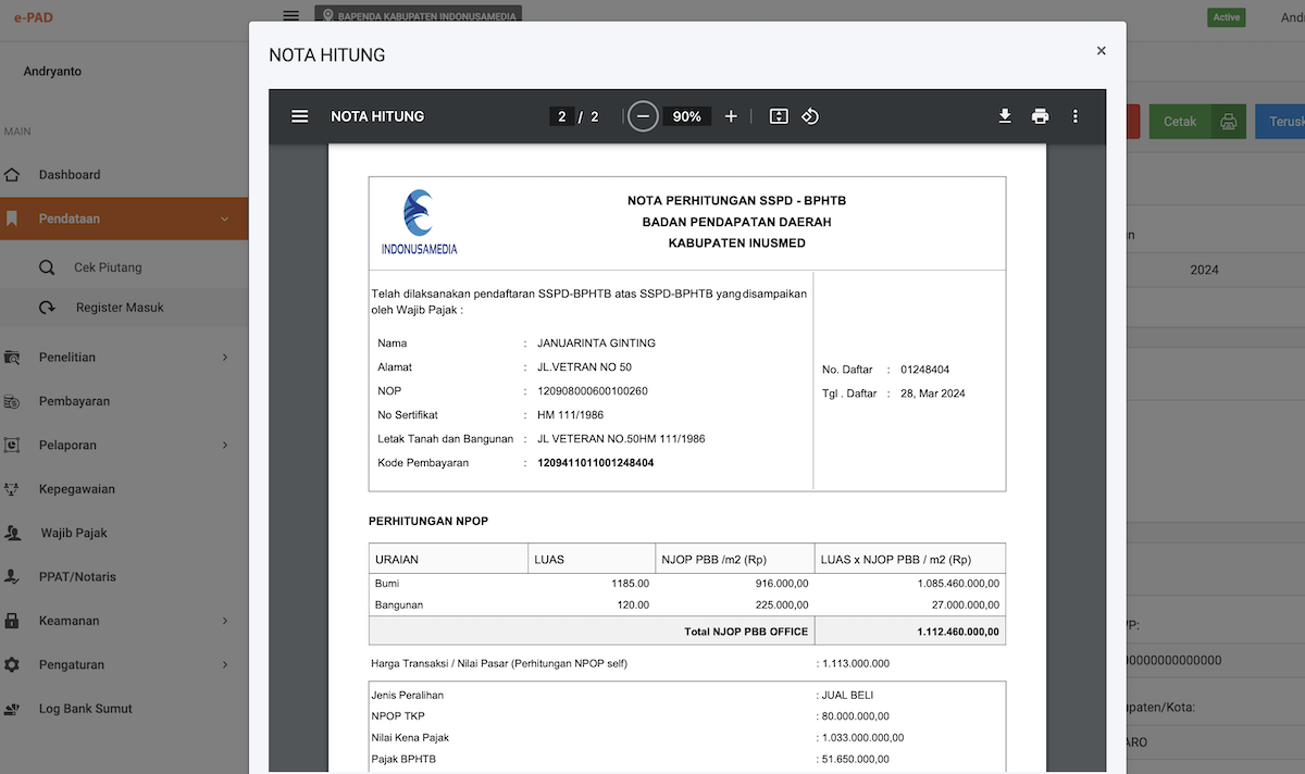 Aplikasi eBPHTB telah terintegrasi dengan Kementrian ATR dan BPN sehingga memberikan kemudahan dalam pengecekkan informasi data pajak BPHTB wajib pajak.