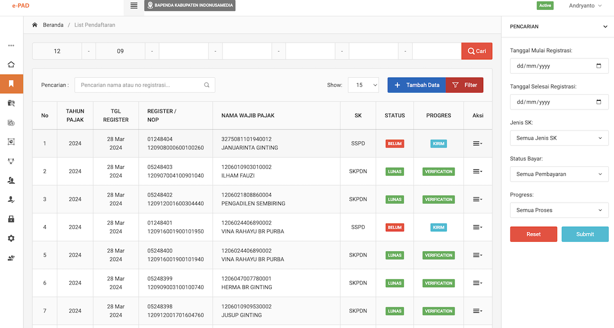 Teknologi yang tepat dalam membantu penatausahaan PAD (Pendapatan Asli Daerah) dan menyajikan informasi pendapatan yang lengkap.