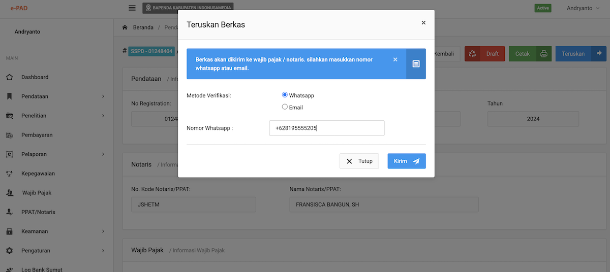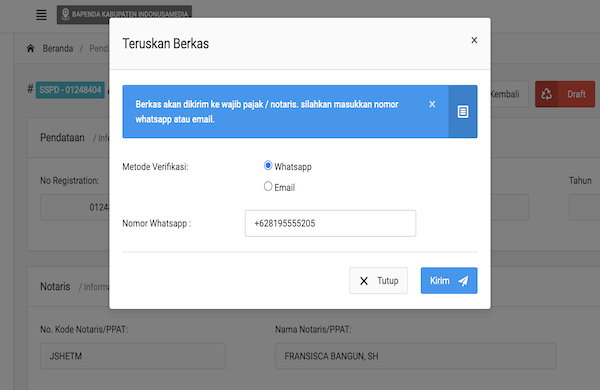 eBPHTB juga terintegrasi dengan Disdukcapil untuk pendaftaran yang akurat berdasarkan NIK dan nama wajib pajak, serta Whatsapp blast yang akan mengirimkan informasi terkini kepada notaris atau wajib pajak